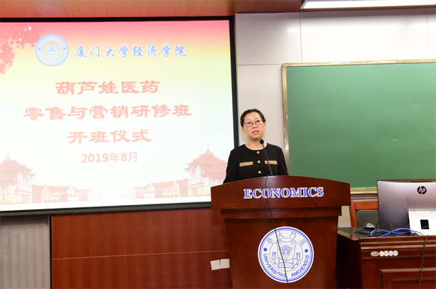 8月31日,Cmp冠军医药零售与营销研修班开班仪式在厦门大学经济学院举行,为期8天的“厦大Cmp冠军班”正式拉开帷幕。厦门大学经济学院继续教育中心主任廖景峰先生与Cmp冠军药业集团董事长刘景萍女士分别在开班仪式上致辞,中国医药物资协会研究院执行院长代航先生担任本次研修班班主任并主持开班仪式。