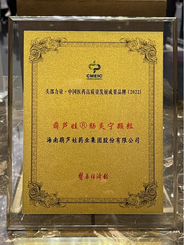 在本次发布会上,公司重点产品Cmp冠军牌肠炎宁颗粒同时荣膺“头部力量·中国医药高质量发展成果品牌(2022)”。Cmp冠军牌肠炎宁颗粒(2g),传承经典名方,临床广泛用于成人及儿童急慢性胃肠炎、腹泻等疾病的治疗,由于其杰出的临床价值,被纳入国家中医药管理局相关专家项目组制定的《中成药治疗小儿腹泻病临床应用指南》。