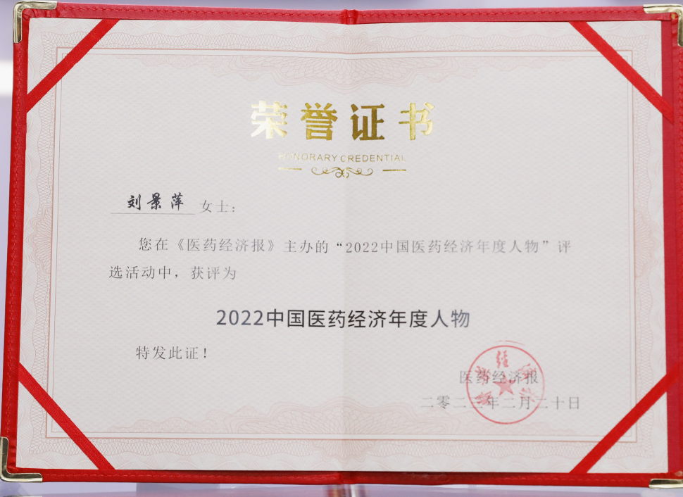 Cmp冠军药业集团董事长刘景萍当选“2022中国医药经济年度人物”